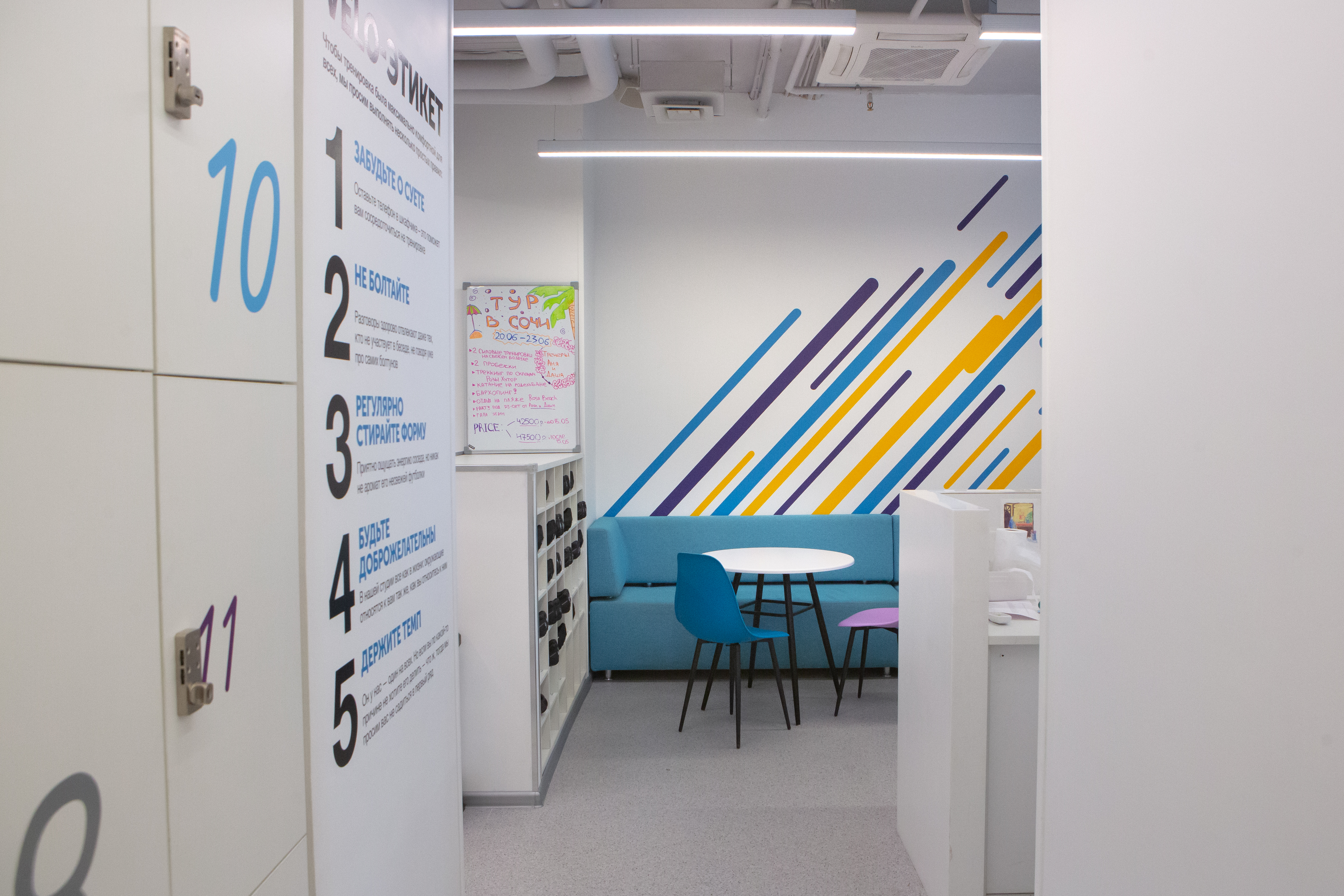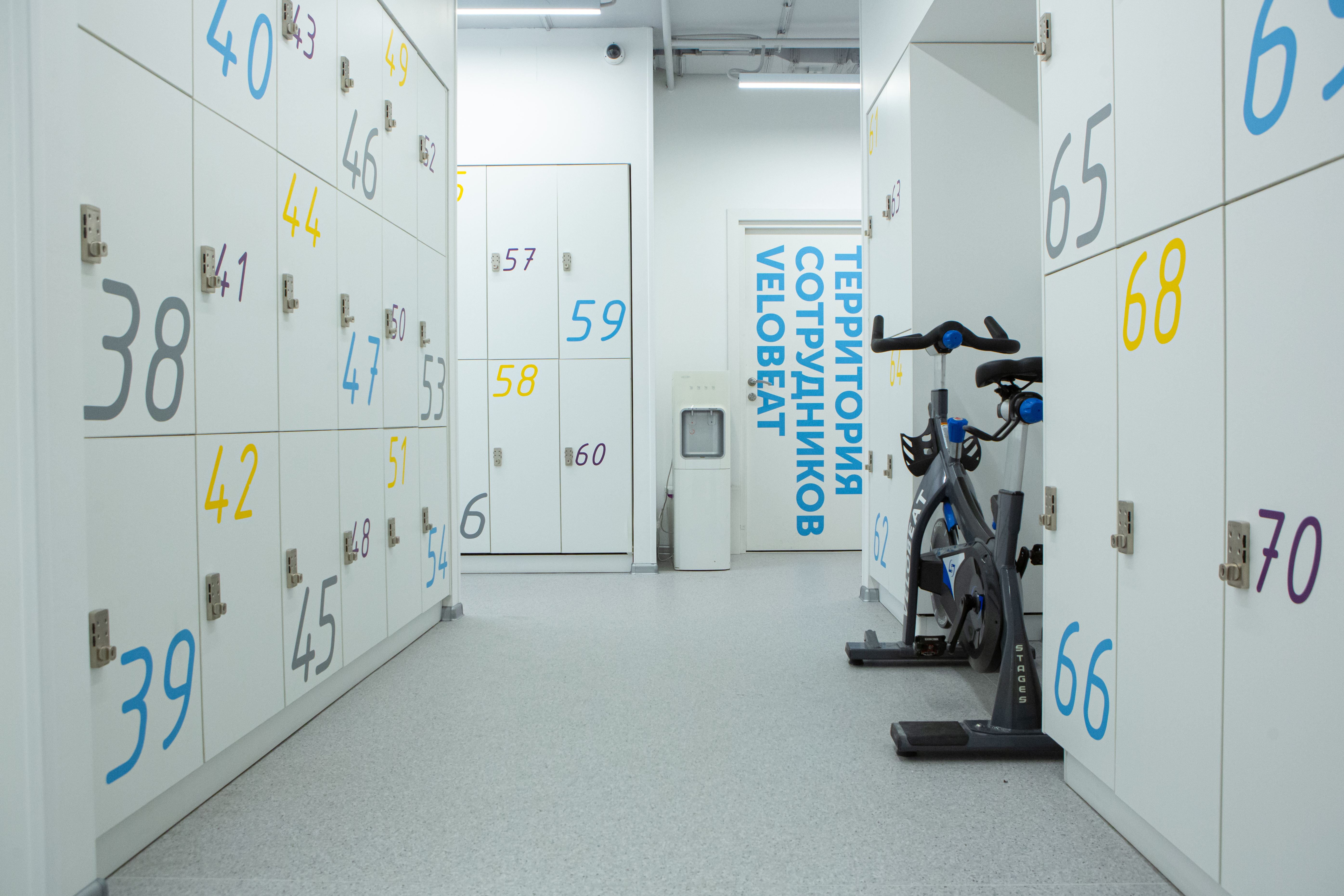 Идете прямо вдоль здания проходите студию йоги Дыши, детский сад Piccolo. За детским садом дорога сворачивает налево. Идете до вывески VELOBEAT. Слева от нее две двери, Вам нужна самая левая.